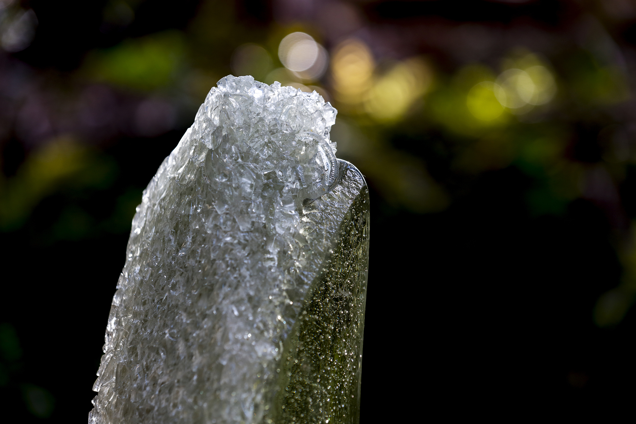 Nếu nhìn kỹ, những tảng thủy tinh này đâu đó có hình bóng của chai lọ đã qua sử dụng.